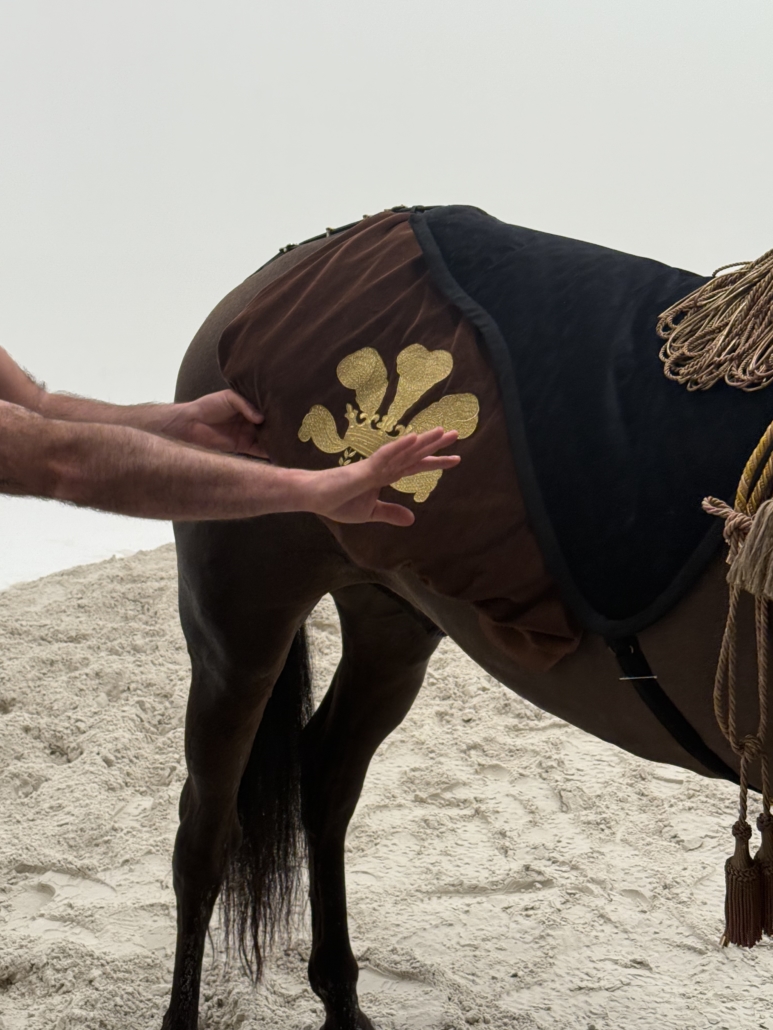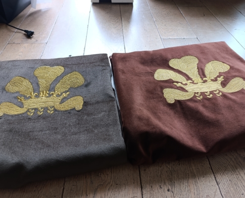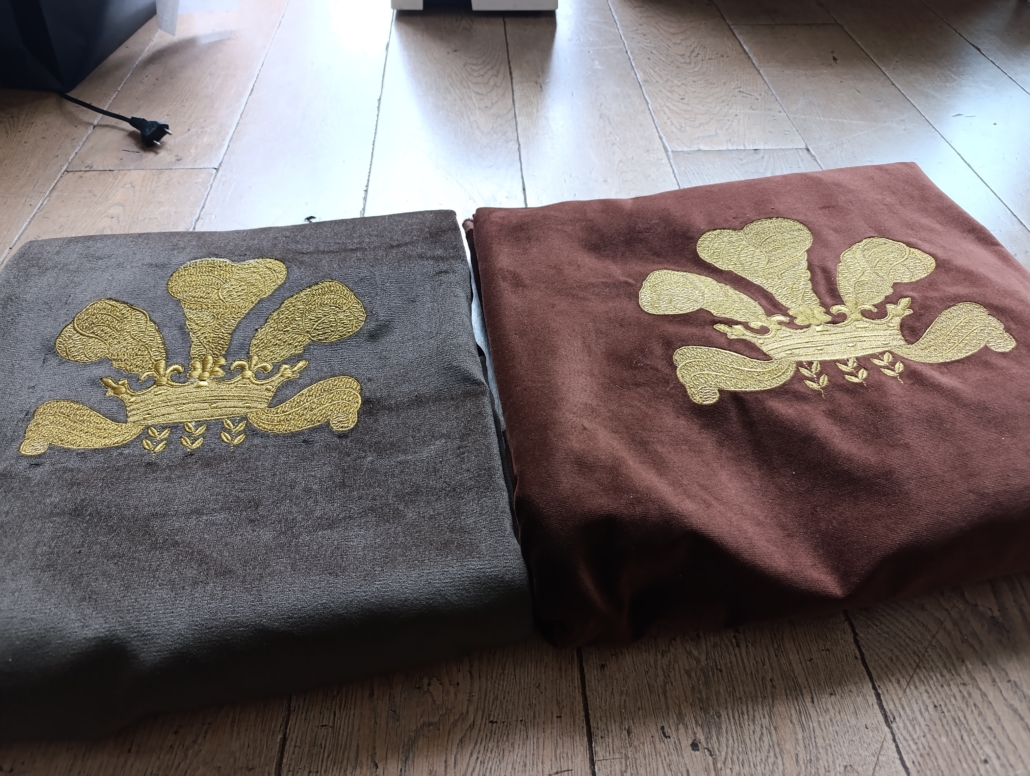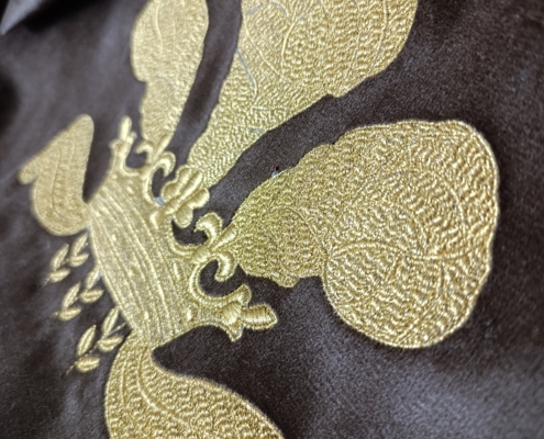 L’agence « Bankal & Decker » nous confie, pour ce film publicitaire  la réalisation de cette majestueuse couronne brodée en fil doré sur un support velours marron  chrocolat. Cet projet brodée se distingue par la finesse de son relief, la précision de ses volumes et la richesse de sa texture. Chaque détail est travaillé pour restituer une sensation de noblesse et de profondeur, rappelant les blasons historiques et les emblèmes royaux utilisés dans l’univers du luxe.
