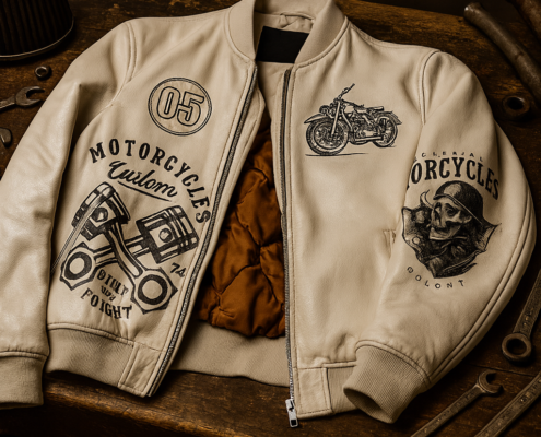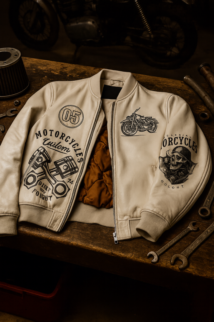 Utilisez l’IA pour générer des visuels réalistes à partir de descriptions précises. Le bombers devient un objet éditorial, mis en scène dans un garage vintage ou sur un mannequin digital. L’image devient un outil de narration.
